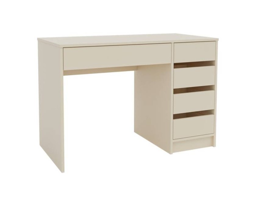 Elegantný písací stôl FIO je vhodný nielen do kancelárie, ale vďaka univerzálnej farbe môže byť súčasťou akejkoľvek detskej izby či už pre dievčatá, či chlapcov.Je mimoriadne praktický vďaka piatim zásuvkám na teleskopických koľajničkách. Je vyrobený z kvalitnej LTD dosky, každá zásuvka má nosnosť 3 kg.Stôl ponúkame v pravom prevedení.Rozmery (ŠxVxH): 110x75x55 cmFarebné prevedenie: satin béžovýDodávame v demonte.