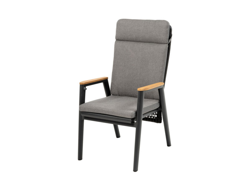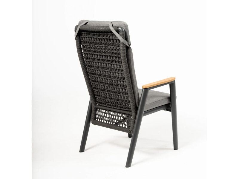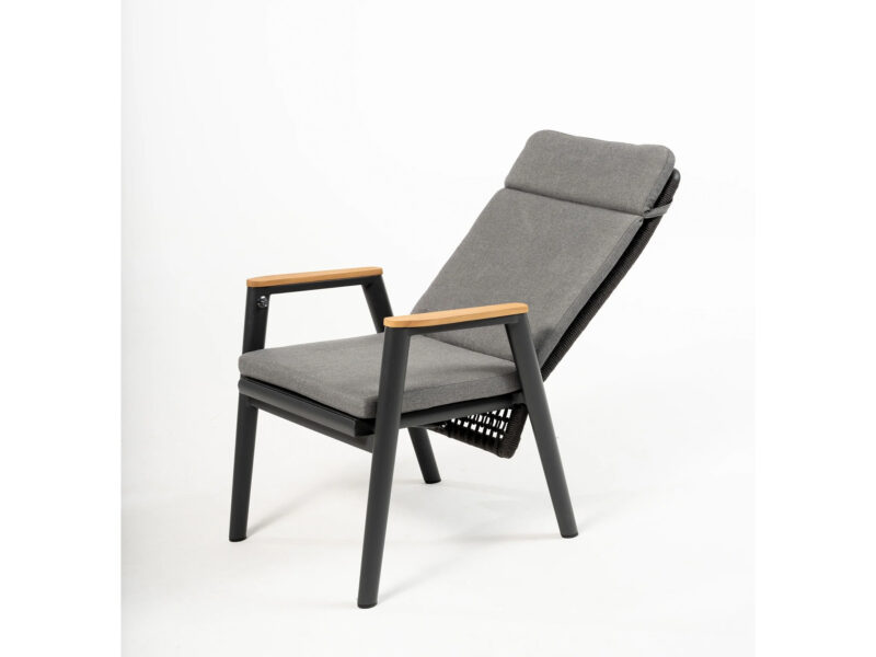 Fisherman polohovateľná stolička s podrúčkami prináša maximálne pohodlie vďaka hliníkovému rámu, teakovým opierkam a Rope výpletu na zadnej strane. Operadlo je možné nastaviť pomocou plynovej pružiny. Vodeodolné vankúše zabezpečujú komfort aj v exteriéri.
