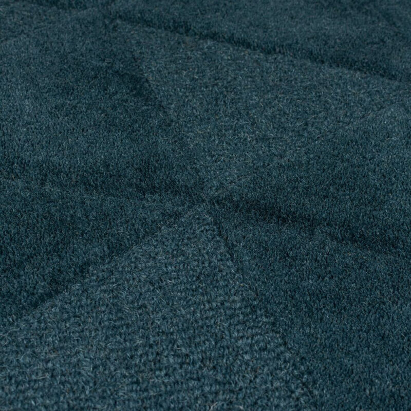 Tyrkysovo modrý koberec s plastickým geometrickým motívom, ktorý ozvláštni každú obývaciu izbu alebo spálňu. Vyrába sa zo 100% vlny a má stredne vysoký strihaný vlas. Medzi jeho prednosti preto patrí mäkký a komfortný povrch, ľahká údržba a skvelé zvukovo aj tepelne izolačné vlastnosti.