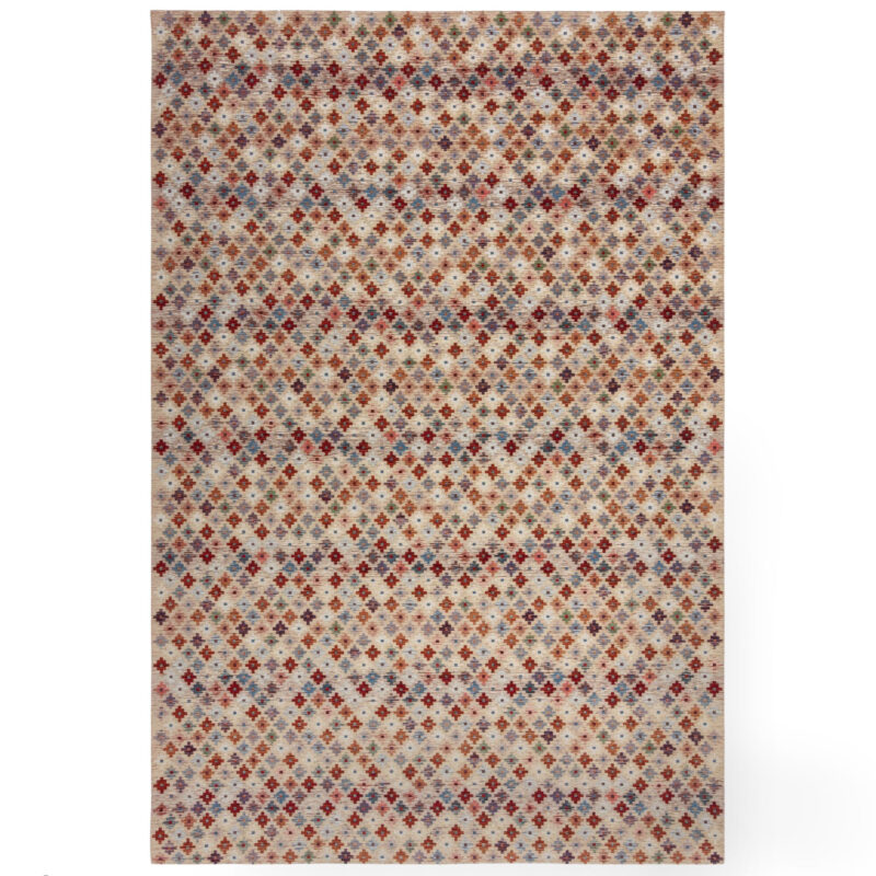 Koberec posiaty rôznofarebnými kosoštvorčekmi prinesie do interiéru dynamiku a moderný šarm. Jeho vzor oživí priestor a dodá mu hravý, ale napriek tomu sofistikovaný vzhľad. Vďaka zmesi akrylu, polyesteru a bavlny je koberec neuveriteľne hebký na dotyk a zároveň veľmi odolný. Nízky profil zaisťuje ľahkú údržbu, čo z neho robí ideálnu voľbu pre frekventované miestnosti.