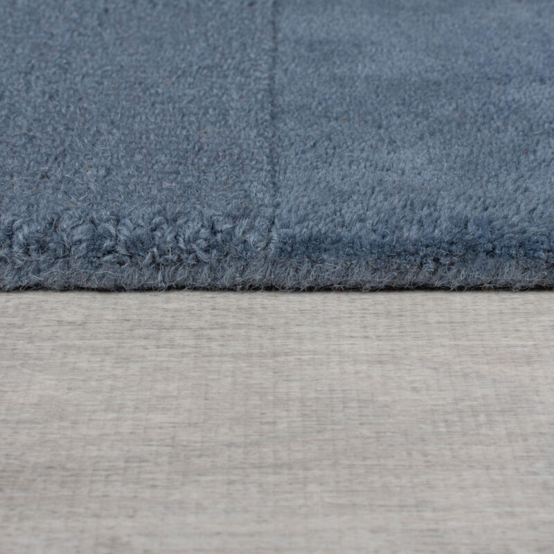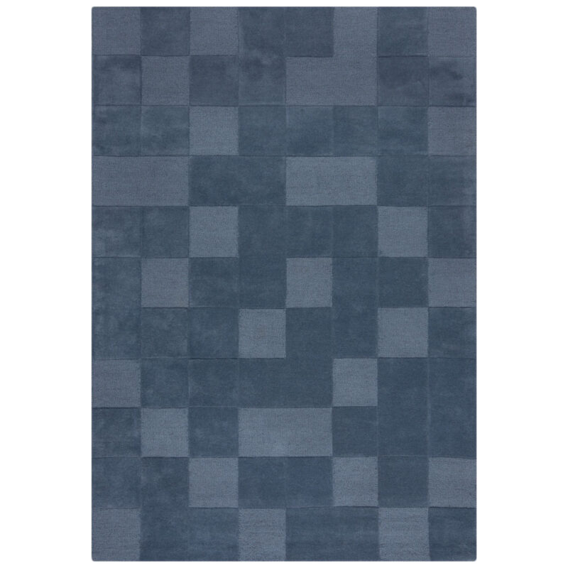 Modrý koberec so štvorcovým vzorom a rôzne vysokým vlasom dodáva interiéru moderný a elegantný vzhľad. Ručne strihané detaily vytvárajú zaujímavý 3D efekt, ktorý zaujme na prvý pohľad. Vďaka vlne skvele izoluje chlad a tlmí hluk.