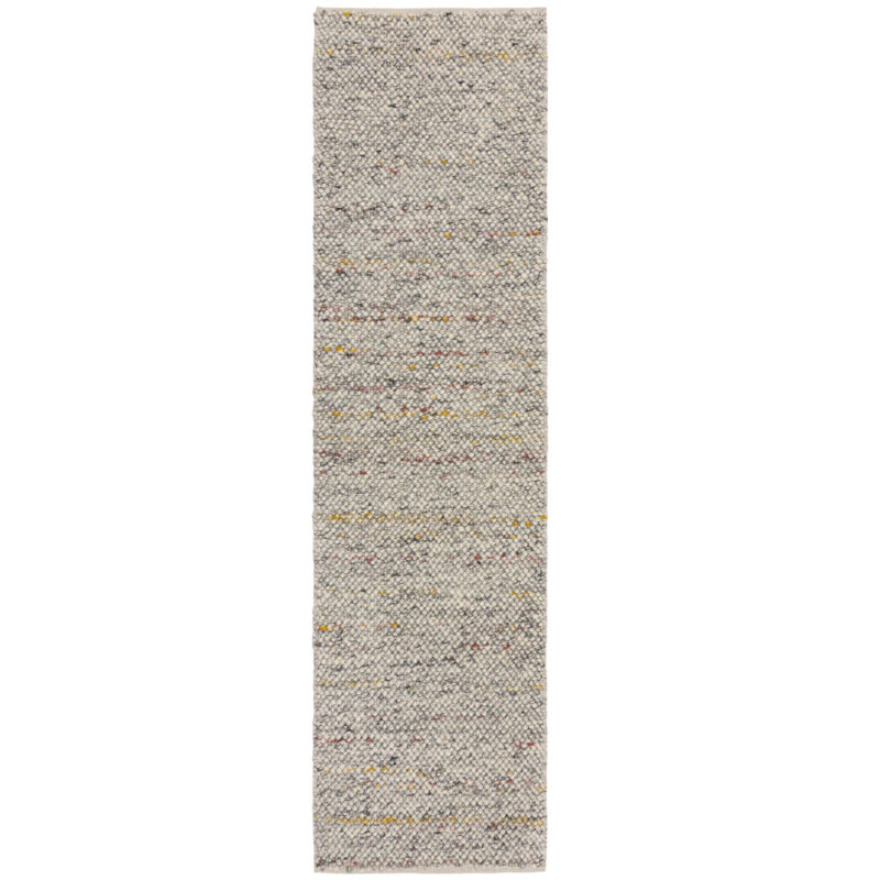 Behúň s krémovo bielymi a čiernymi vláknami ako základom je oživený žltými a červenými akcentmi, ktoré vytvárajú hravý a moderný vzhľad. Štruktúrovaný povrch pripomínajúci jemné kamienky poskytuje príjemný pocit pri chôdzi a dodáva interiéru zaujímavý prvok. Kombinácia vlny a polyesteru zaisťuje skvelú izoláciu proti chladu aj hluku.