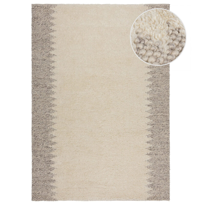 Flair Rugs, Ručne tkaný kusový koberec Minerals Border Natural, 120×170, biela, chodba / predsieň