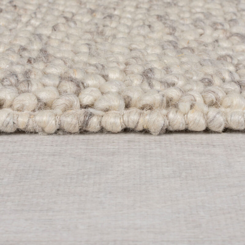 Koberec s krémovo bielym strihaným vlasom v strede je zvýraznený tmavšími slučkami pozdĺž dlhších strán, ktoré vytvárajú štýlové a pútavé lemovanie. Tento kontrast medzi stredom a okrajmi dodáva kobercu elegantný a moderný vzhľad, ktorý oživí akýkoľvek interiér. Mäkký povrch poskytuje pohodlie pri chôdzi, zatiaľ čo kvalitné spracovanie zaručuje odolnosť a dlhú životnosť.