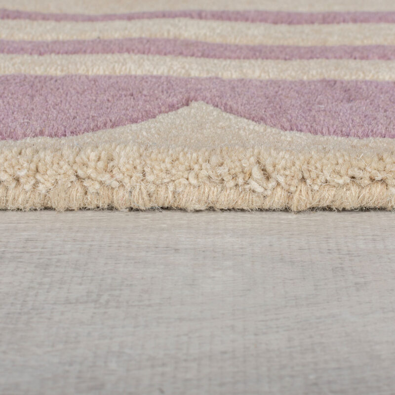 Svetlo béžový koberec s jemnými svetlo fialovými vzormi prinesie do interiéru elegantný a sofistikovaný nádych. Vďaka prestrihnutiu vzorov vytvára vizuálne zaujímavý efekt, ktorý upúta pozornosť. Vlna použitá pri výrobe zaisťuje výborné tepelné a zvukové izolačné vlastnosti. Strihaný vlas s výškou 7 mm je príjemne mäkký na dotyk, čo oceníte najmä v spálni alebo obývačke, kde poskytuje pohodlie aj štýl.