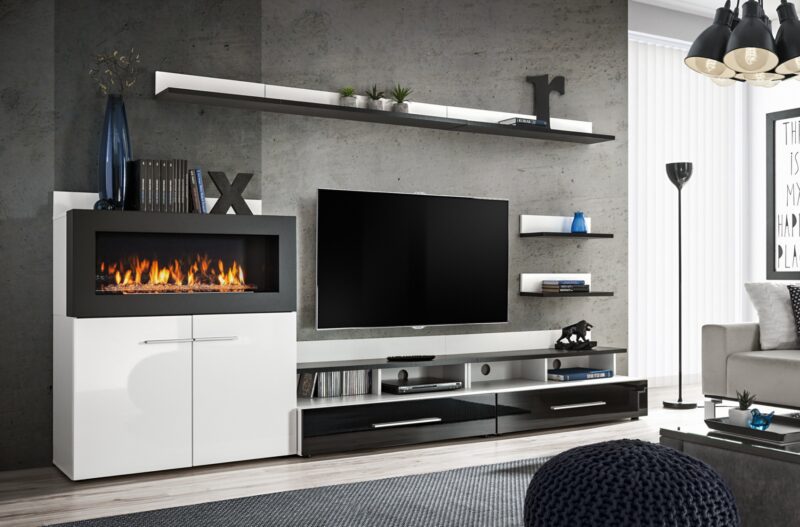 Netradičná a zároveň veľmi atraktívna obývacia zostava FLAME upúta nejedného návštevníka. Má efektne zabudovaný bio krb vo vitríne. Farebné prevedenie je v oblúbenej bielej farbe v kombinácii s čiernou.Obývacia stena je vyrobená z kvalitných MDF dosiek, ktoré sú nenáročné na údržbu.BIO KRB je v cene zostavyBIO krb funguje na bio-alkohol, ktorý sa jednoducho naleje do horáku bio-krbu a zapáli sa.Bez odstraňovania dreva alebo popola.Palivo je certifikovaný 96 % bio-alkohol, ktorý je upravený a denaturovaný tak, aby horel krásnym žltým plameňom, bez dymu a škodlivých splodín. Výsledkom horenia je oxid uhličitý (CO2) a voda (H2O), ktoré vylučuje v bezpečnom množstve.ROZMERY : (š/v/h) 290 x 160 x 45 cm.Rozmery vitríny s krbom: (š/v/h) 100 x 90 x 40 cm. Jednotlivé prvky sa nedajú zakúpiť samostatne – zostava sa predáva len ako celok.Dodávame v demontovanom stave.
