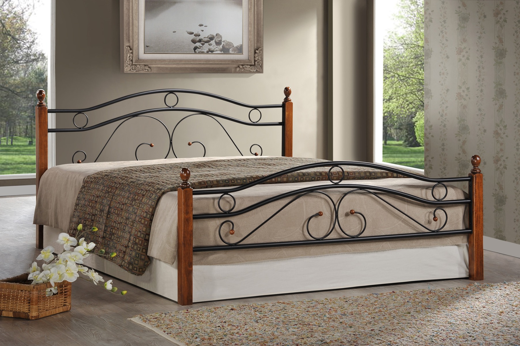 Dizajnová manželská posteľ FLORENCE 180 dodá Vašej spálni zaujímavú atmosféru a bude ozdobou nejedného interiéru. Spája dva materiály – čierny kov a masívne drevo vo farbe divoký dub. Výška čela pri hlave je 92 cm. V cene postele rošt tvorený drevenými lamelami, ktoré sú vsadené do kovového rámu postele. Matrac nie je súčasťou postele, je potrebné ho dokúpiť vo veľkoti 180 x 200 cm alebo 2 ks v rozmere 90 x 200 cm.Rozmer lôžka 180 x 200 cm.Dodávame v demonte.