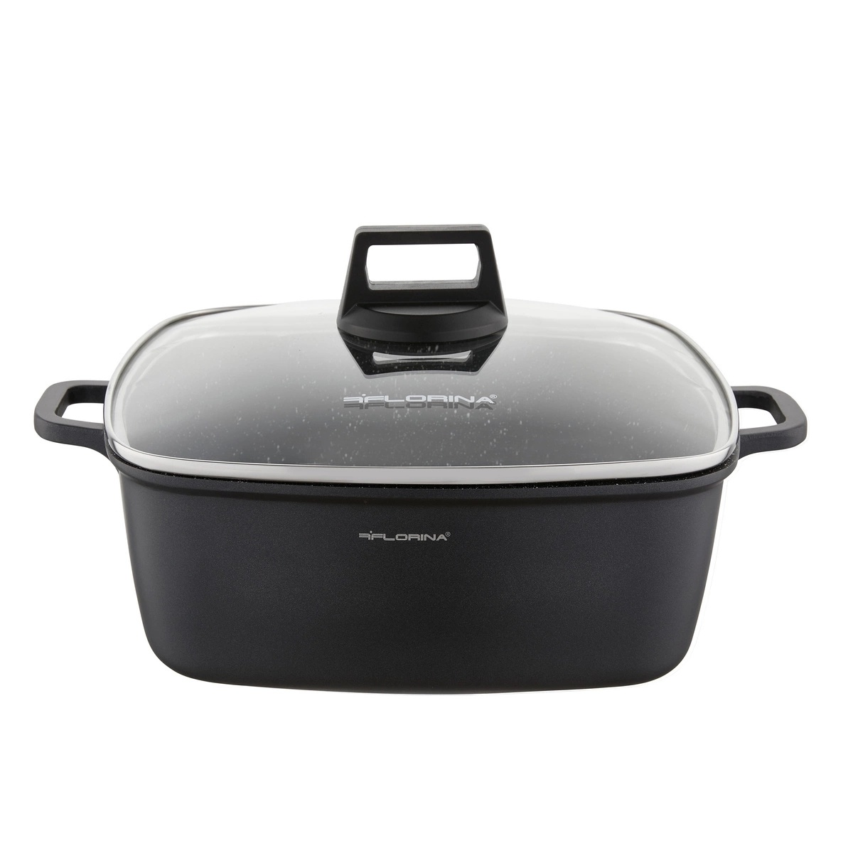 Florina Chef kvalitný štvorcový hliníkový hrniec vám umožní varenie a pečenie jedla v jednom hrnci.Cítiť sa ako profesionálny kuchár. Pripravte náročné jedlá a vychutnajte si vždy ich výnimočnú chuť. V riade Chef line môžete piecť, variť, smažiť a dusiť akékoľvek jedlo s použitím minimálneho množstva tuku. Vo vašej kuchyni nesmie chýbať štvorcový hrniec s rozmermi 28 x 28 x 10,7 cm. V nádobe môžete nielen variť, ale aj piecť pokrmy (nepoužívajte veko v rúre).Hrniec s objemom 5,8 l je vyrobený z vysoko kvalitného liateho hliníka, ktorý zaručuje mimoriadnu efektivitu varenia. Hrniec sa zahrieva rýchlo a rovnomerne. Vo vnútri je pokrytý nepriľnavým povlakom, ktorý umožňuje pripravovať jedlo s minimálnym množstvom tuku. Vďaka tomu si zachováte všetky nutričné hodnoty pokrmu.Sklenená pokrievka umožňuje sledovať pripravovaný pokrm. Pozor na rukoväte – odliate spolu s telom, poskytujú pevné uchopenie a bezpečnosť pri prenášaní nádoby s horúcim pokrmom.Hrniec bol prispôsobený všetkým typom sporákov, vrátane indukcie. Ideálny do každej kuchyne. Ručné umývanie.