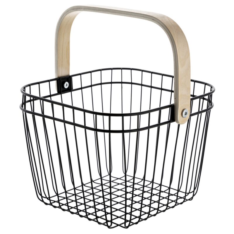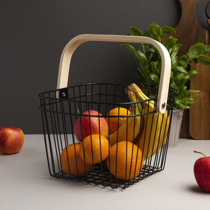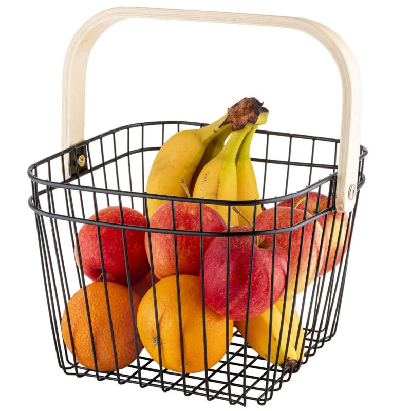 Florina Kovový kôš na ovocie s drevenou rukoväťou, 25 x 25 x 18,5 cm