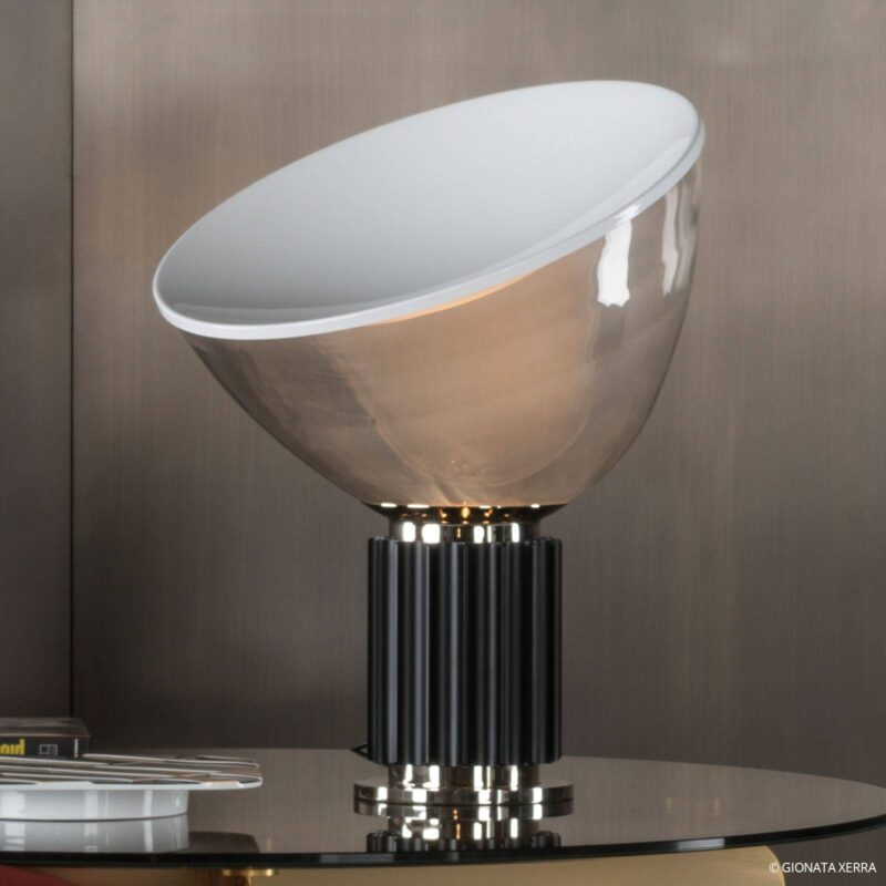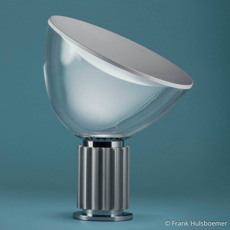 Dizajnová klasika z roku 1962 s LED diódami: malá stolová lampa Taccia Ťažko uveriť, že stolová lampa Taccia bola navrhnutá v roku 1962, pretože jej dizajn pôsobí futuristicky a moderne. Jasné, energeticky úsporné a stmievateľné LED diódy so svietivosťou 1 290 lúmenov sú umiestnené v základni stolnej lampy. Tým sa vytvára nepriame a odrazené svetlo. Nie je už žiadnym tajomstvom, že nepriame svetlo dokáže vytvoriť mimoriadne atmosférickú atmosféru, a tak sa dizajn z počiatkov „vesmírneho veku“ a skvelý svetelný efekt spájajú do pôsobivého celku. Všetky svietidlá od talianskej spoločnosti FLOS sú najvyššej kvality a spĺňajú najvyššie dizajnové štandardy. Reflektor malej stolovej lampy Taccia je vyrobený z hliníka a difúzor je z priehľadného ručne fúkaného skla. Intenzitu svetla možno regulovať v rozsahu od 10 do 100 % pomocou spínača stmievača.
