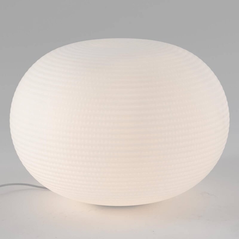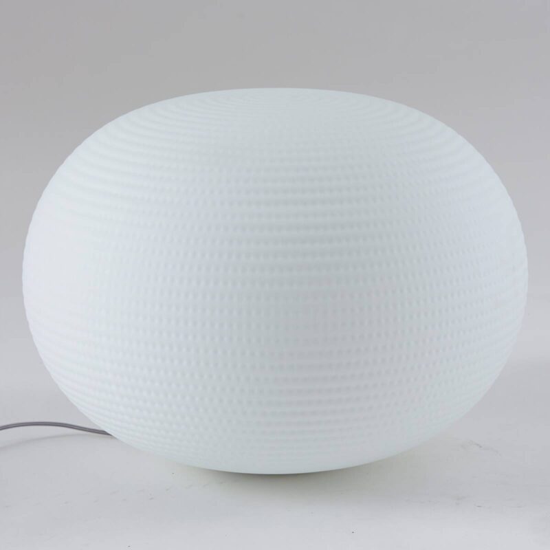 Ručne vyrobená stolová lampa Bianca sa dá použiť aj ako stojacia lampaBianca je model švédskeho dizajnéra Mattiho Klenella, ktorý sa preslávil predovšetkým ako umelec v oblasti skla. Sklo je aj hlavnou súčasťou tejto stolovej a stojacej lampy. Dobre tvarované, takmer guľovité telo pozostáva z pevného fúkaného skla, ktoré bolo brúsené na stuhe a následne ponorené do kyseliny, čo vytvára typický hodvábny efekt skla. Fúkanie skla s takým veľkým priemerom, ako je to v prípade tohto modelu, si vyžaduje obrovské zručnosti a talent, pretože podľa starej benátskej tradície sa k nemu nedodávajú žiadne pomocné nástroje. Sklár sa môže spoľahnúť len na svoju zručnosť a silu pľúc. Povrch skla má ľahkú štruktúru pripomínajúcu stopy v čerstvo napadanom snehu. Vďaka povahe skla je svetelný efekt nielen neoslňujúci, ale aj mimoriadne útulný a domácky. K útulnosti prispieva aj integrovaný stmievač, ktorý je zabudovaný v priehľadnom kábli. Vďaka svojim rozmerom sa Bianca dá použiť ako stolová alebo stojacia lampa.