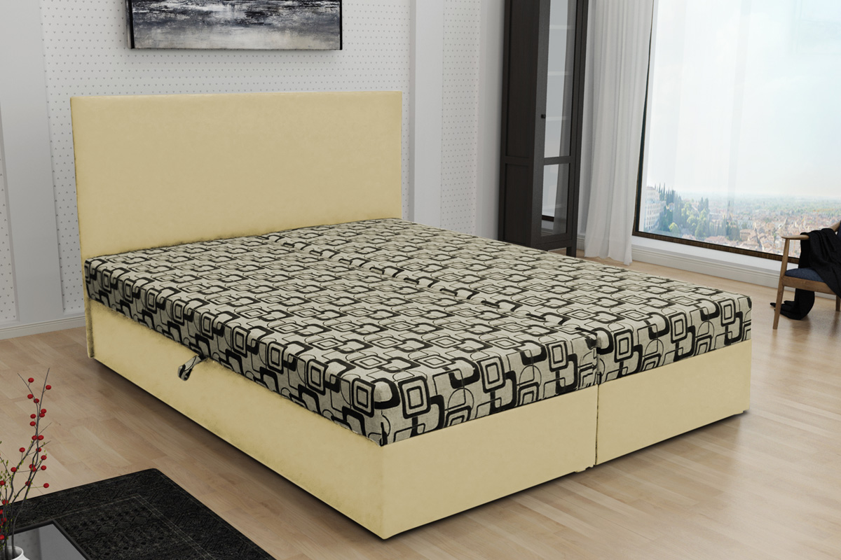 Moderná a nadčasová manželská posteľ FORD je to pravé pre Vás a Vašu spálňu. Čalúnená posteľ vám poskytne miesto pre dokonalý relax a odpočinok. Zaujme Vás farebným prevedením a vysokým čelom postele, ktoré zabraňuje oderu steny.Posteľ je čalúnená látkou dolaro krem/siena. Výška čela postele je 100 cm. Súčasťou postele je kvalitný bonellový matrac. Poskytuje vysokú elasticitu a dokonale sa prispôsobí Vášmu telu.Posteľ má veľký úložný priestor, kde ľahko zmestíte napríklad vrchné prikrývky. Otváranie a zatváranie postele je jednoduché a takmer nehlučné.Pre väčší komfort si môžete dokúpiť praktický vrchný krycí matrac TOPPER, viď doporučenia. Maximálna nosnosť postele je 230 kg.Rozmery:- šírka: 140 cm,- výška: 100 cm,- hĺbka: 208 cm.Dodávame v demonte, pričom montáž je veľmi jednoduchá.