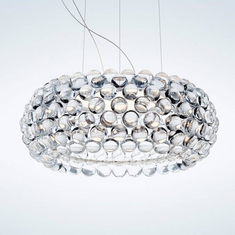 Príjemné svetlo smerom nadol a iskrivá podívaná všade okolo – závesné svietidlo Caboche Plus media LED Táto moderná závesná lampa od spoločnosti Foscarini inšpiruje množstvom priehľadných PMMA perál, ktoré obklopujú tienidlo. Tie dodávajú zariadeniu Caboche osobitý charakter a spolu s vyžarujúcim svetlom integrovaných LED diód poskytujú iskrivé lomy svetla, ktoré ponoria miestnosť do jedinečnej atmosféry. Dizajn pochádza od návrhárok Patricie Urquioly a Eliany Gerotto, ktoré sa inšpirovali perlovým náramkom. Aktualizované edície Plus sa medzitým stali skutočnou dizajnovou klasikou a ponúkajú vylepšenú technológiu LED a optimalizovaný držiak perál. Pozostávajú z priehľadných plastových pásikov, ktoré sú v prevádzke neviditeľné a umožňujú voľný vývoj dizajnu a svetelného efektu.
