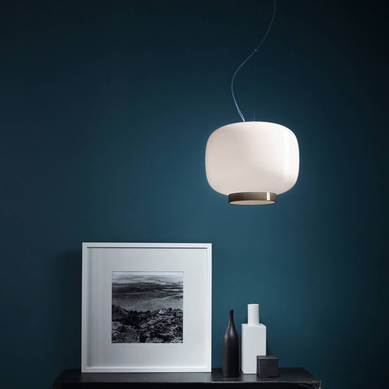 Foscarini Chouchin Reverse 3 – závesné LED svietidlo s jasným, emotívnym svetlom Na rozdiel od klasickej série Chouchin od spoločnosti Foscarini ponúka Chouchin Reverse, ako už názov napovedá, dizajn v obrátenej farebnej schéme. Rodina svietidiel, ktorá pochádza z pera francúzskej dizajnérky Ionny Vautrin, je vybavená tienidlom z fúkaného skla, ktoré je v pôvodnej verzii farebne lakované, a teda nepriehľadné. Pri svietidle Chouchin Reverse 3 zostáva sklenené tienidlo biele saténové a malý krúžok na spodnej strane je farebný. Vďaka tomu závesné svietidlo LED Chouchin Reverse 3 nevydáva svetlo len smerom nadol, ale aj rozptýlene cez tienidlo do miestnosti. Tento svetelný efekt je vnímaný ako jasný a veľmi príjemný, čo sa dá veľmi dobre využiť v útulných obývacích izbách alebo v baroch a kaviarňach. Tvar série Chouchin je inšpirovaný japonskými lampášmi, ktoré sa v Japonsku zvyčajne používajú v skupinách pred domami alebo reštauráciami. Chouchin je preto navrhnutý tak, aby sa dal dobre používať aj samostatne, ale aby dosiahol pôsobivú harmóniu najmä v interakcii s ďalšími dvoma tvarmi Chouchin.