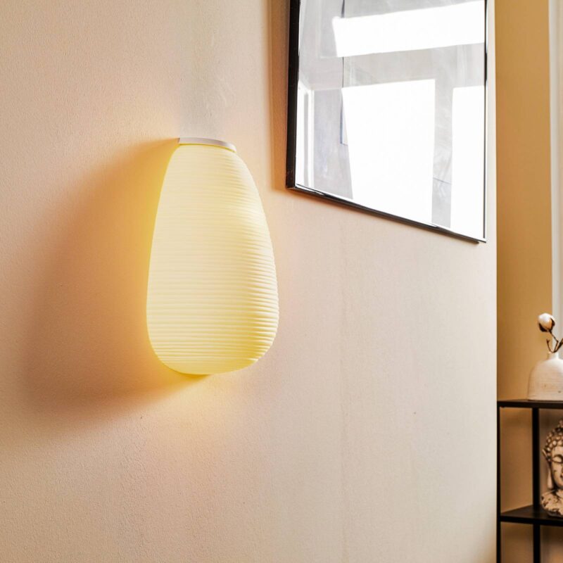 Nástenné svietidlo Rituály 1 semi vytvára útulnú atmosféru Všade, kde sa používa polostenové svietidlo Rituals 1, obohacuje svoje okolie tlmeným svetlom a šíri pocit tepla. Stlmenie svetla sa dosahuje filigránskou štruktúrou drážok, ktoré sa tiahnu po povrchu svietidla v nepravidelnej ornamentálnej štruktúre. Tvarované tienidlo je vyrobené z fúkaného skla a jeho pôvabný vzor vznikol vďaka špeciálnej forme. Kovový krúžok na hornom konci lampy dotvára dizajn a vďaka nemu lampa Rituals vyzerá ako svietidlo zapustené do steny. Nástenné svietidlo sa vyrába v manufaktúre benátskeho výrobcu Foscarini a je výsledkom zložitého procesu ručnej práce. Všetky svietidlá tohto výrobcu sa vyznačujú vynikajúcou kvalitou, ako aj inovatívnym a dekoratívnym dizajnom, ktorý vzniká v spolupráci s medzinárodne uznávanými dizajnérmi. V prípade Rituals spoločnosť Foscarini poverila dizajnérsku dvojicu Ludovica a Roberto Palomba, ktorí už doplnili sortiment výrobkov spoločnosti o niekoľko ikonických svietidiel.