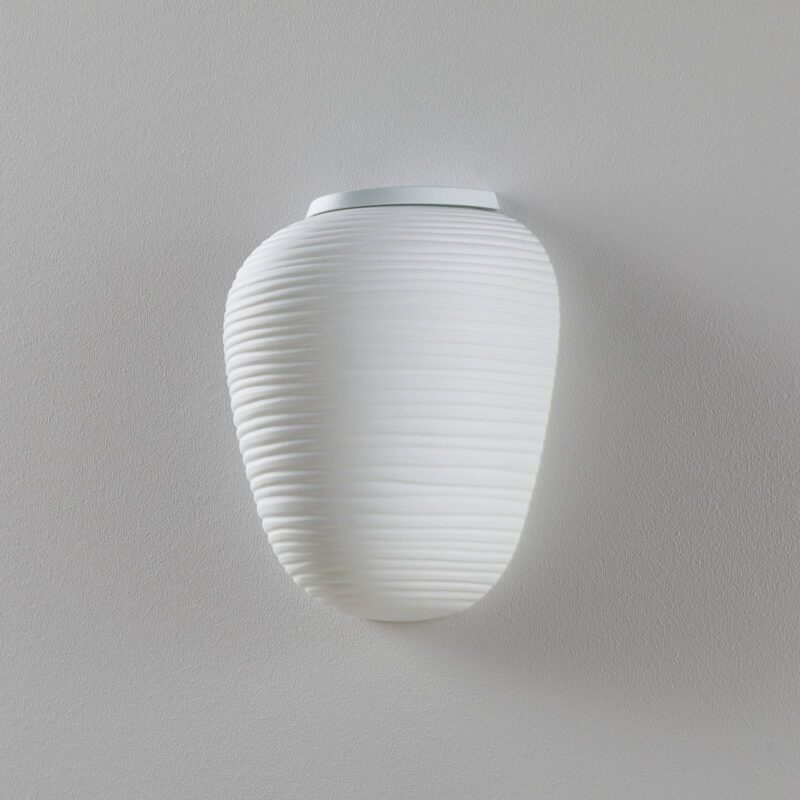 Elegantné nástenné svietidlo Rituals 3 semi od spoločnosti Foscarini Nástenné svietidlo Rituals 3 semi patrí do série svietidiel, ktoré inšpirujú svojou jemnou eleganciou a napĺňajú súkromné aj verejné priestory hrejivou atmosférou. Lampa má tienidlo z fúkaného skla, ktoré je zdobené štruktúrou horizontálnych drážok. Reliéfne línie sú rôzne hrubé a nepravidelne usporiadané. Vďaka rôznej hrúbke skla sa svetlo stlmí a vytvorí sa rozdielna intenzita svetla. Vďaka bielej farbe skla a filigránskemu reliéfu vyzerá lampa takmer ako lampáš z jemného ryžového papiera. Filigránska štruktúra lampy je výsledkom najvyššej remeselnej kvality, ktorá je charakteristická pre všetky lampy od spoločnosti Foscarini. Výrobca už viac ako 30 rokov vyrába na benátskom ostrove Murano svietidlá, ktoré vznikajú v spolupráci s medzinárodnými dizajnérmi. Dizajn pre Rituals pochádza z pera Ludovicy a Roberta Palombovcov, ktorí sa vyznačujú nadčasovými návrhmi, ktoré nikdy nestrácajú na aktuálnosti a v ktorých skúmajú nové možnosti vyjadrenia použitých materiálov.
