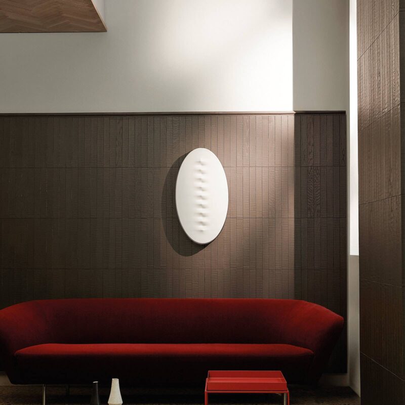 Nástenné svietidlo LED Superficie vytvára moderné prvky Superficie je novou interpretáciou klasickej nástennej lampy, ktorá je zvyčajne okrúhla alebo hranatá. Toto nástenné svietidlo presvedčí oválnym tvarom a umne navrhnutým povrchom. Povrch tvorí biely PMMA, ktorý úplne obklopuje nástenný držiak z hliníka. Plast má tiež vzor konkáv a konvexov, vďaka čomu svietidlo vyzerá ako futuristická nástenná maľba. Do nástenného držiaka sú integrované výkonné LED diódy, ktorých teplé biele svetlo je tlmené bielym plastom, a tak rovnomerne vyžaruje do okolia. Štruktúrovaný povrch svietidla v kombinácii s intenzívnym svetlom vytvára zaujímavú hru svetla a tieňa, vďaka ktorej sa nástenné svietidlo stáva absolútnym vrcholom miestnosti. Superficie navrhlo dizajnérske duo Calvi & Brambilla pre talianskeho výrobcu Foscarini. Svietidlo naplno rozvinie svoj účinok najmä v miestnostiach v modernom štýle a možno ho namontovať na stenu alebo strop, ako aj horizontálne alebo vertikálne. Kreativite sa teda medze nekladú. – stmievateľné (TRIAC)