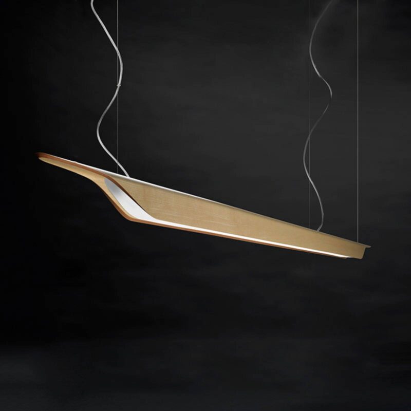 Závesné svietidlo LED Troag Medium s prírodným dreveným tienidlom V závesnom svietidle Troag Medium LED sa príroda spája s modernou technológiou. Tienidlo je vyrobené z dreva v jedinečnom zakrivenom tvare s dole stiahnutými stranami a v spodnej časti je uzavreté satinovaným krytom z PMMA. Teplé biele svetlo zabudovaných LED diód vyžaruje veľmi rovnomerne smerom nadol a vzhľadom na veľký svetelný výkon poskytuje jasné osvetlenie aj v priestranných verejných priestoroch. Ďalšou vlastnosťou závesného svietidla je mimoriadne dobré podanie farieb LED diód s CRI > 90. Medzinárodne uznávaný dizajnér Luca Nichetto, ktorý pôsobí najmä v Benátkach a Štokholme, navrhol sériu Troag pre talianskeho výrobcu Foscarini. Závesné svietidlo predstavuje zaujímavú zmes severskej kultúry a stredomorskej kreativity a svojím tvarom pôsobí nezameniteľne.