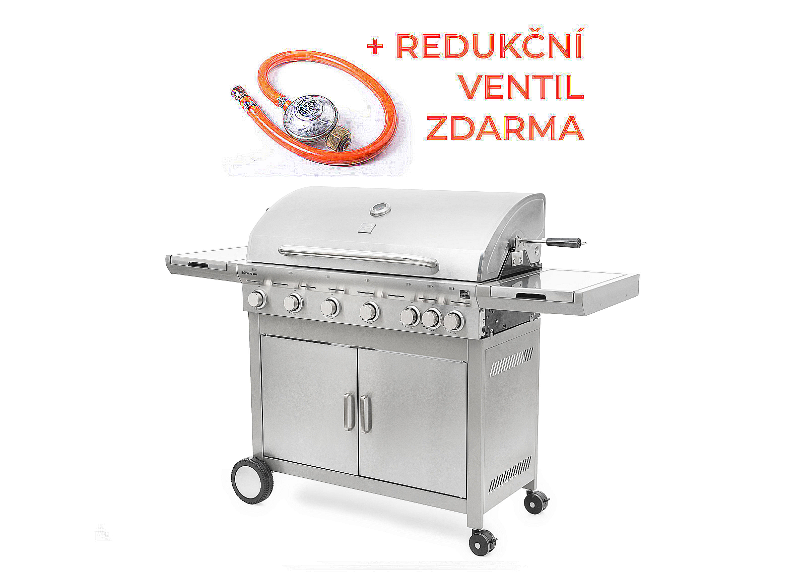 K záhradnému grilu od nás ďalej zadarmo obdržíte spojovaciu hadicu k plynovej fľaši a redukčný ventil. Môžete si k nemu dokúpiť nerezovú grilovaciu ihlu.