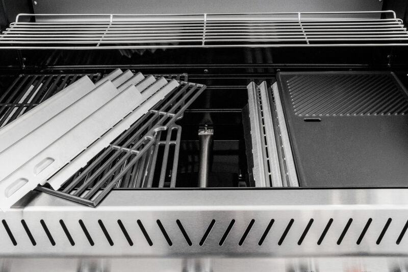 Päť hlavných horákov s výkonom 3,5 kW poskytuje dostatočný výkon na prípravu väčšieho množstva jedál naraz, či už ide o mäso, zeleninu alebo ryby. Bočný horák s výkonom 3,15 kW využijete na prípravu príloh, ohrev omáčok či varenie. Gril je vybavený tromi liatinovými roštami a jedným liatinovým plátom, ktoré rovnomerne rozvádzajú teplo. Súčasťou výbavy je aj nerezový rošt na ohrev. Ten je ideálny na odkladanie hotových pokrmov bez toho, aby došlo k ich pripaľovaniu.