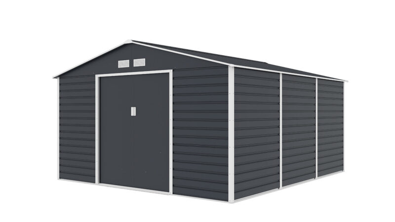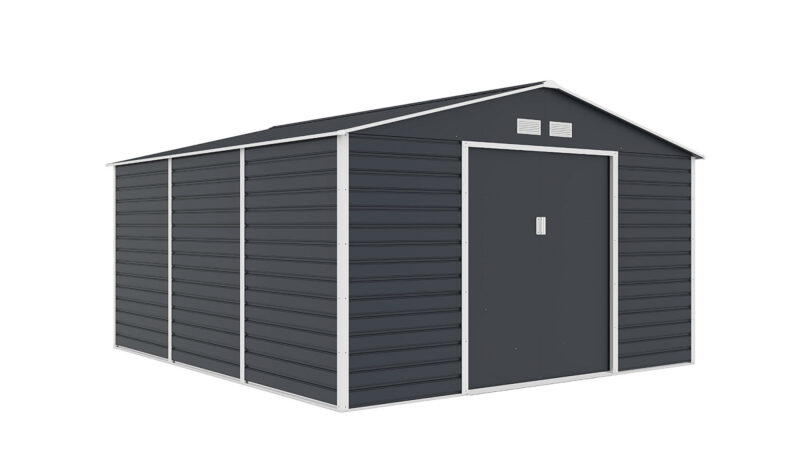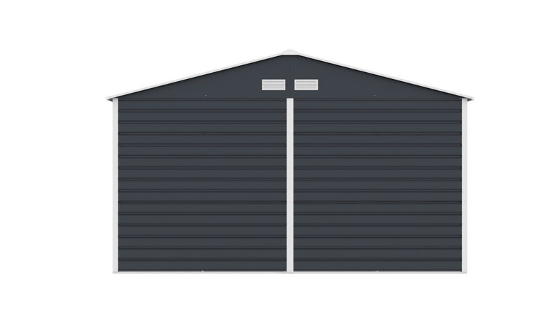 Záhradné domčeky na náradie v modernom dizajne sa hodia do každej záhrady. Vstupné dvere sú dostatočne široké, preto do domčeka pohodlne uložíte svoje náradie, záhradné koliesko aj vonkajší nábytok. Záhradný domček je vyrobený z kvalitného profilovaného oceľového plechu hrúbky 0,25 – 0,30 mm. Povrch je pozinkovaný a má práškový nástrek. Jeho oceľová konštrukcia je pozinkovaná a je opatrená ventilačnými mriežkami. Montáž domčeka je veľmi jednoduchá. Odporúčame ho inštalovať na veľkoformátovú dlažbu alebo na betónový základ. Na pevný pozinkovaný rám primontujete oceľový, pozinkovaný plech s práškovým nástrekom, ktorý je odolný voči zlému počasiu. Súčasťou balenia sú dverné úchyty, vďaka ktorým domček ľahko zaistíte proti nepozvaným hosťom. Strecha záhradného domčeka unesie maximálne 65 kg/m2. Šírka prednej strany je 340 cm, výška v najvyššom bode je 205 cm a šírka bočnej strany je 382 cm. Výška bočnej steny bez strechy je 163 cm. Na prednej strane sa nachádzajú dvere. V domčeku sa snúbi tradičný prírodný dizajn s modernými kvalitnými materiálmi. Preto bude domček krášliť vašu záhradu po dlhé roky bez toho, aby na ňom čas zachoval nejaké stopy.