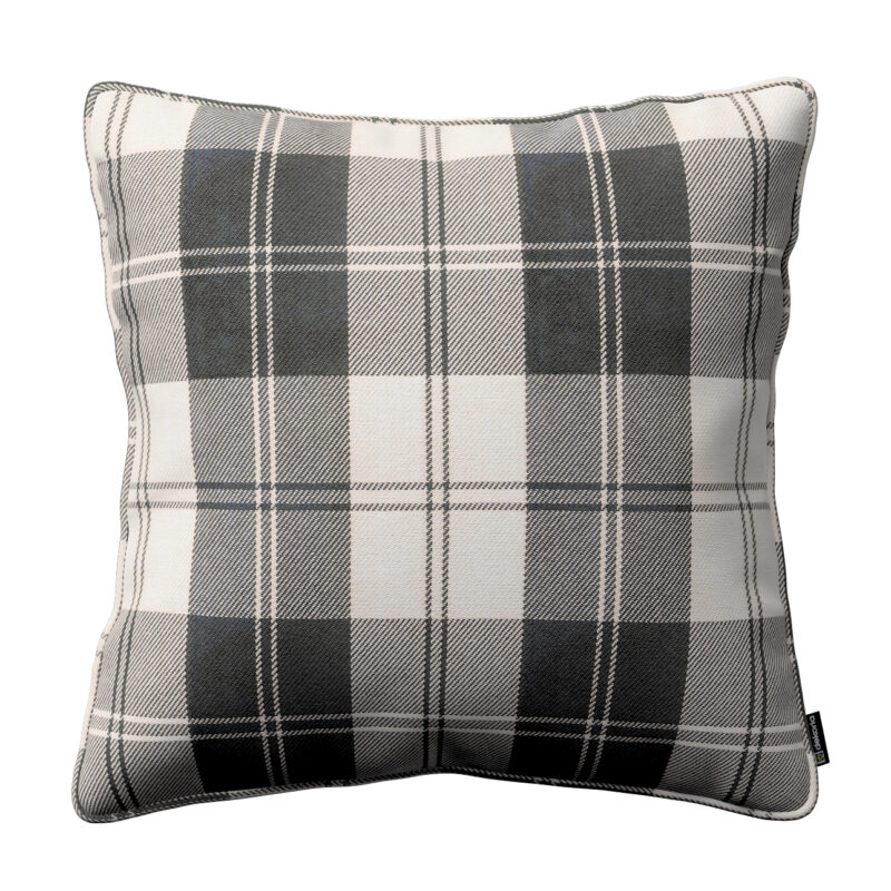 Gabika so šnúrkou, obliečka na vankúš, čierno – biele káro, 60 x 60 cm, Edinburg, 115-74