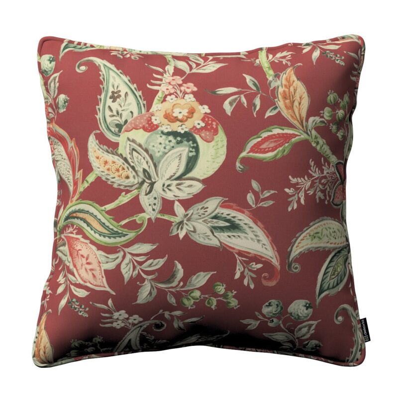 Gabika so šnúrkou, obliečka na vankúš, kvetinové vzory na pozadí z tehlovo-červenom podklade, 60 x 60 cm, Gardenia, 142-12