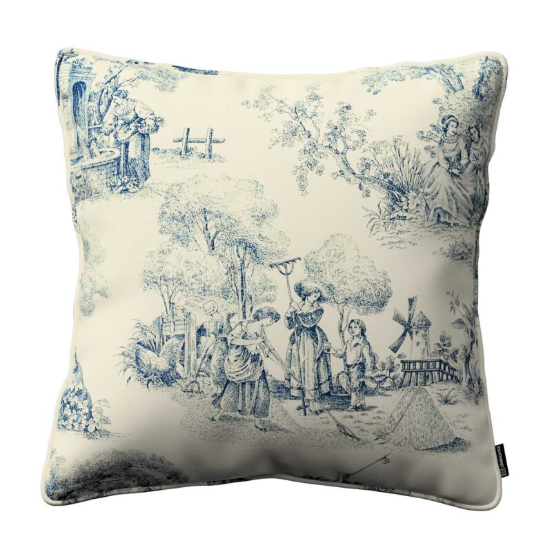 Gabika so šnúrkou, obliečka na vankúš, modrý vzor na svetlobéžovom podklade, 45 x 45 cm, Avinon, 132-66