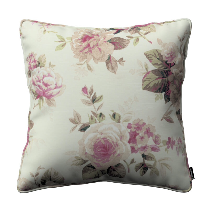 Gabika so šnúrkou, obliečka na vankúš, ružovo-béžové ruže na krémovom podklade, 60 x 60 cm, Londres, 141-07