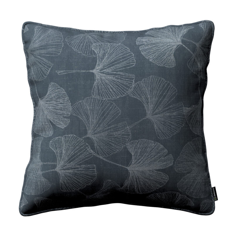 Gabika so šnúrkou, obliečka na vankúš, strieborné listy ginka na grafitovom podklade, 45 x 45 cm, Flowers, 143-52