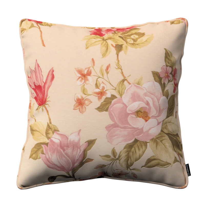 Gabika so šnúrkou, obliečka na vankúš, výrazný vzor ružovozelené kvety na ľanovom podklade , 60 x 60 cm, Londres, 143-87