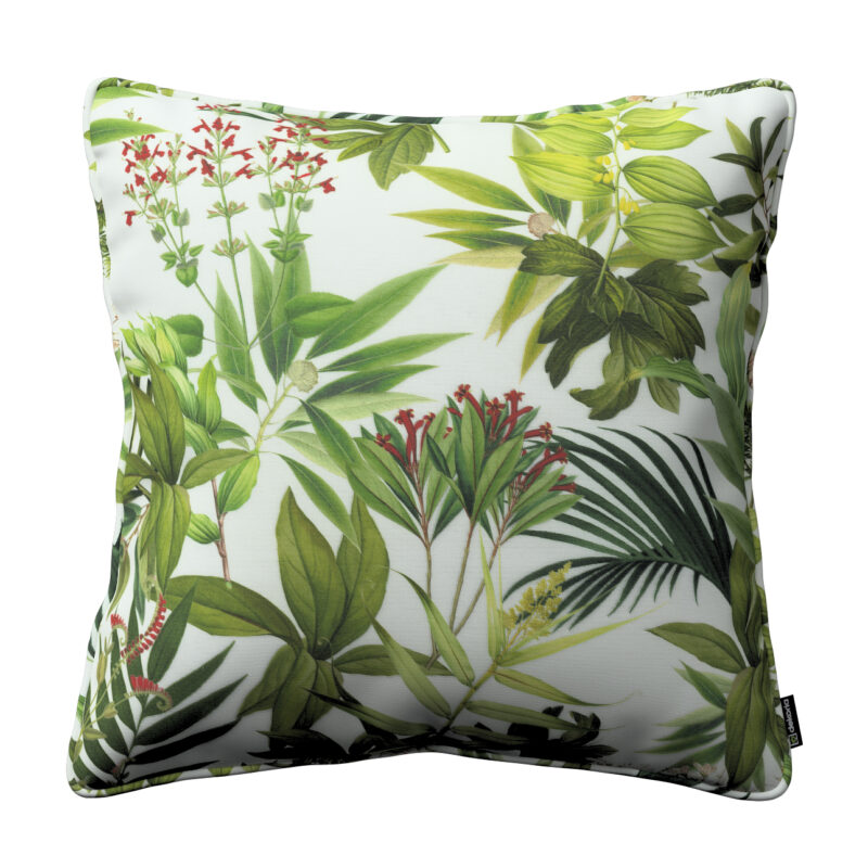 Gabika so šnúrkou, obliečka na vankúš, zeleno – červené rastliny na bielom podklade, 45 x 45 cm, Tropical Island, 143-69