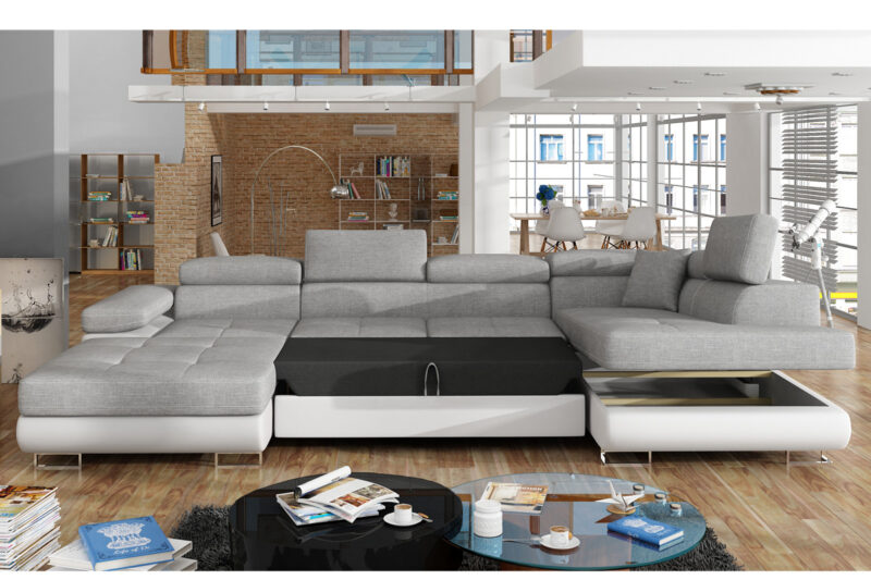 Moderná účková sedačka GAMERO je v elegantnom a štýlovom prevedení. Je vhodná do väčších obývacích priestorov. Zaujme aj náročných zákazníkov.Vďaka kombinácii materiálov vám sedačka ponúkne pohodlné sedenie. Sedacia časť je vyrobená z vlnovcovej pružiny a PUR peny s tvrdosťou T3040. Opierková časť je vyrobená z PUR peny s tvrdosťou T2542.Sedačka GAMERO vám ponúka pohodlné sedenie a leňošenie. Isto vás potešia jej štýlové polohovacie záhlavníky. Na sedacej časti sa nachádza efektné prešívanie. Takto je dizajn sedačky elegantne prepojený a vytvára moderný celok. Elegantné nožičky sú v striebornom farebnom prevedení. Sedačka je čalúnená kvalitnou látkou Berlin 01 a ekokožou Soft 17.Sedačka vás poteší praktickým úložným priestorom. Tiež disponuje funkciou rozkladu. Spacia plocha: 125 x 266 cm, vhodná na príležitostné spanie. Hĺbka sedu: 58 cm, výška sedu: 43 cm.Rozmery (š,v,h): 345 x 90 x 202 cm. Účková sedačka je v ľavom prevedení. V ponuke je aj v pravom prevedení.Dodávame v demonte.