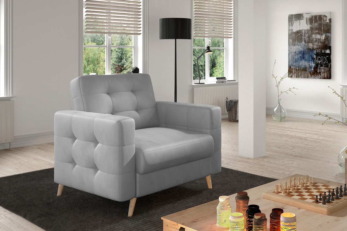 Kreslo GARD je moderným a štýlovým nábytkom. Je vhodné do moderných interiérov.Vďaka kombinácii kvalitných materiálov vám kreslo GARD ponúka pohodlné sedenie. Sedacia časť je vyrobená z vlnovcovej pružiny a PUR peny s tvrdosťou T3030. Opierková časť je vyrobená z PUR peny s tvrdosťou T2542.Efektným a dominantným prvkom kresla je prešívanie, ktoré sa nachádza na opierkovej časti a na bočniciach. Takto je dizajn kresla elegantne prepojený a vytvára zaujímavý celok. Nožičky, ktoré sú vo farbe prírodného dreva dotvárajú celkový vzhľad kresla. Je čalúnené kvalitnou poťahovou látkou Monolith 84.Hĺbka sedu: 46 cm, výška sedu: 44 cm.Celkové rozmery kresla (š,v,h): 107 x 86 x 92 cm. V ponuke máme tiež elegantné trojsedáky GARD.