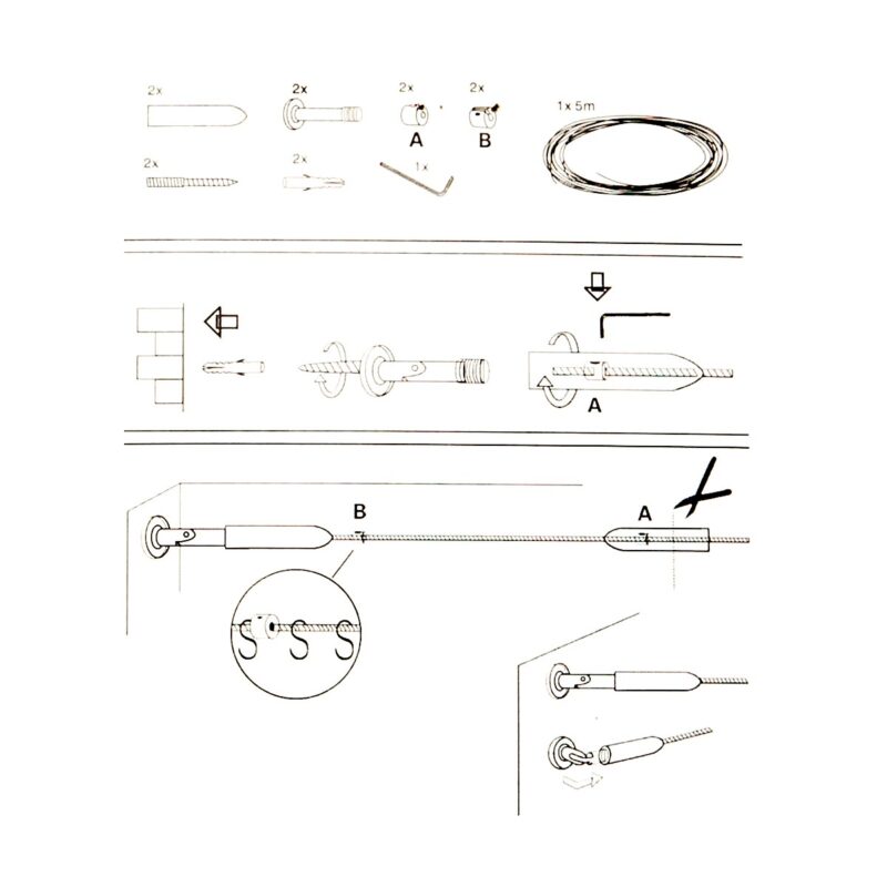 Napínacia lanková súprava Race, lanko je možné akokoľvek zkrátiť, montáž na stenu alebo strop. Jednoduchá montáž pre zavesenie závesu alebo záclony. Balenie je vrátane príslušenstva.