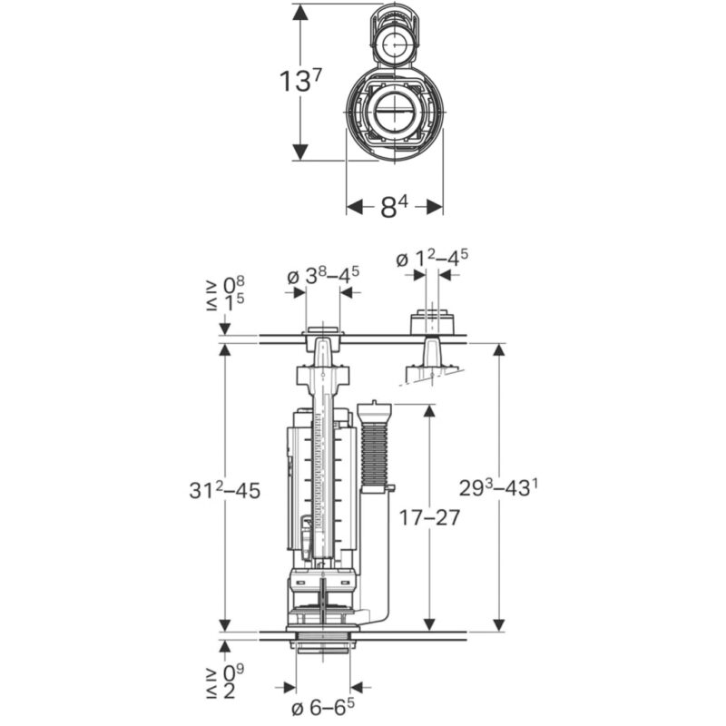 Účel použití Pro keramické splachovací nádržky s otvorem ø40 mm Pro pitnou vodu Pro šedou vodu (dešťovou vodu) s hodnotou pH 6,0–9,5, pokud se používá filtrační zařízeníVlastnosti 2 množství splachování Malé a velké splachovací množství nastavitelné, podle množství vody ve splachovací nádržce Výškově nastavitelný Přepadová trubka výškově nastavitelná S upevněním víka Hodí se k pouzdrům pro vypouštěcí ventil typu 280 a 250 (Twico 1) Ean: 8590913899065