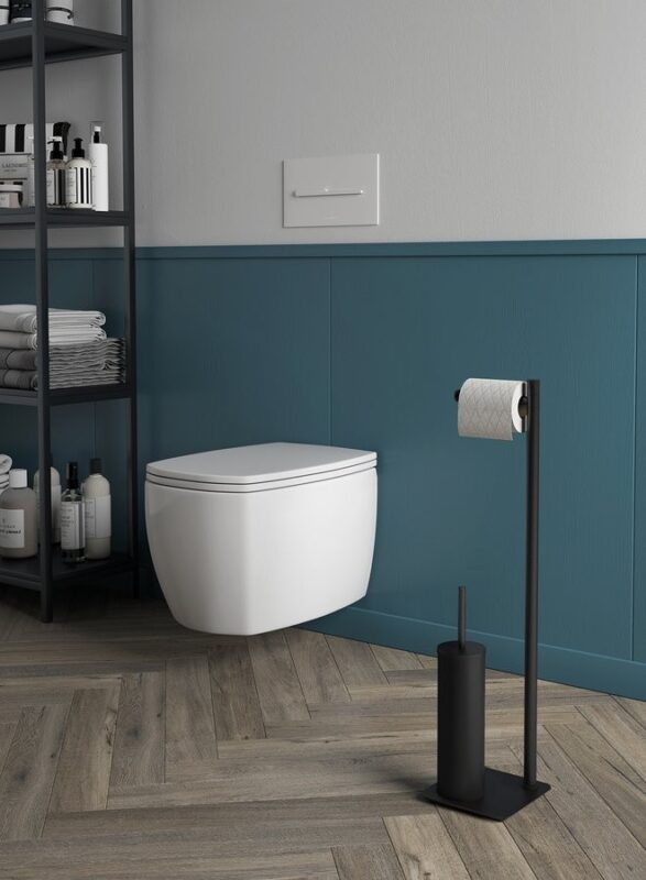 Gedy – ARTU Stojan s držiakom na toaletný papier a WC kefou, hranatý, čierný mat 113214