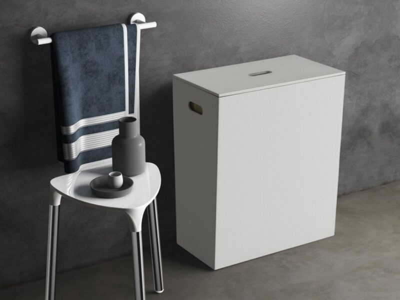Stylové doplňky pro koupelnu v moderních barvách, vyrobené ze dřeva potaženého syntetickou kůží. Dokonalé zpracování je podtrženo ozdobným švem. Prádelní koš LUXURY se stane nepostradatelnou součástí koupelny.