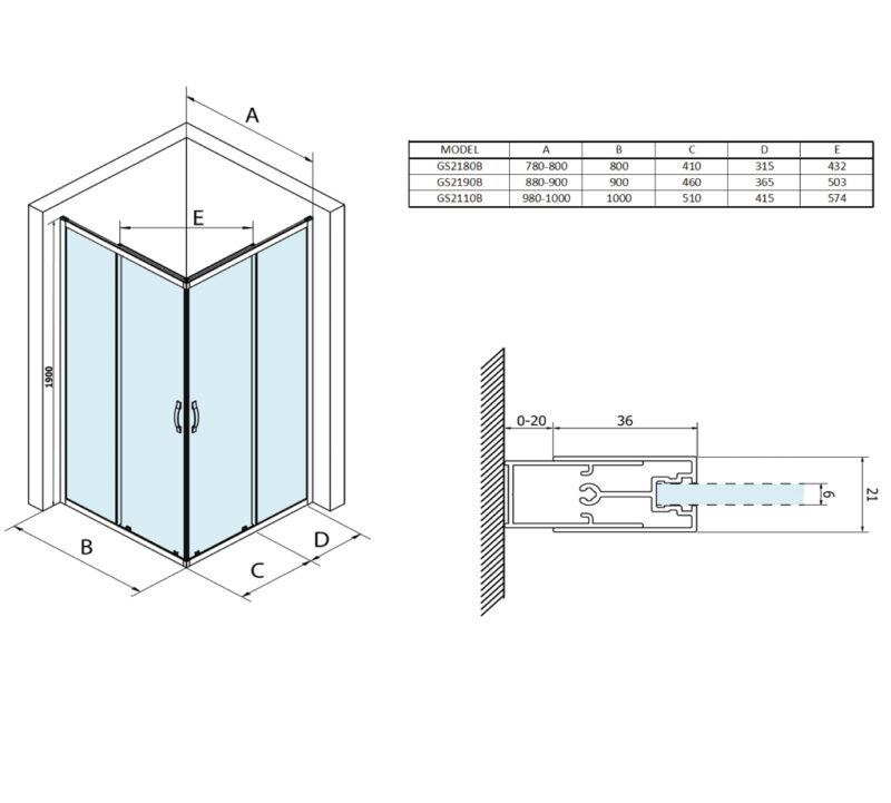 GELCO – SIGMA SIMPLY BLACK štvorcová sprchová zástena 900×900 rohový vstup, číre sklo GS2190BGS2190B