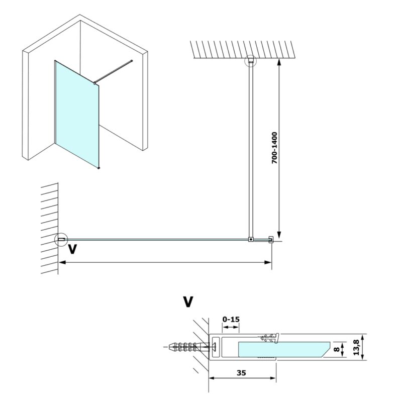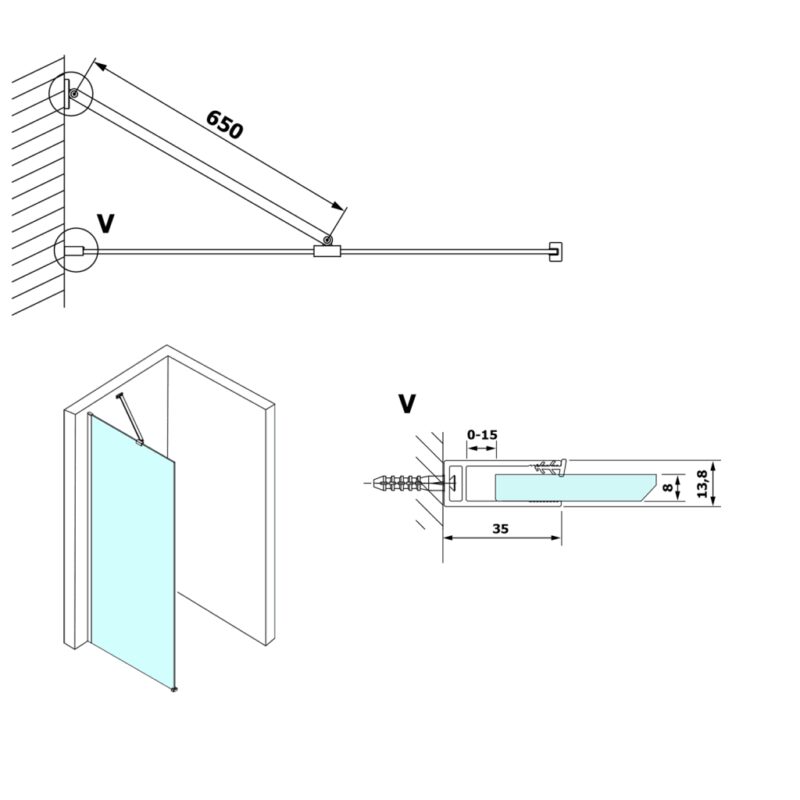 Kolekcia walk-in zásten VARIO ponúka inteligentné a flexibilné riešenie podľa individuálnych a priestorových dispozícií. Stavebnicový systém skiel, vzpier a profilov umožňuje premyslené kombinácie rozmerov, farieb a tvarov zásten – či už k stene alebo do priestoru. Elegantný vzhľad vďaka minimu komponentov v chrómovom, čiernom matnom, bielom matnom, zlatom alebo zlatom matnom prevedení je vhodný pre každú kúpeľňu. Charakteristika sprchových walk-in zásten série VARIO Zásteny v šírkach 700 až 1400 mm Bezpečnostné sklo o hrúbke 8 mm na výber v prevedení číre/dymové/matné/nordic Povrchová úprava Coated Glass zabraňuje usadzovaniu vodného kameňa a uľahčuje čistenie Stenové profily s toleranciou 15 mm uľahčujú stabilnú montáž zásten, inštalácia je možná na dlažbu alebo sprchovú vaničku Stenový profil zásten na výber z prevedenia: chróm / čierna mat / biela mat / zlatá / zlatá mat Kolmá vzpera s dĺžkou 1400 mm na výber v prevedení chróm / čierna mat / biela mat / zlatá / zlatá mat Kolmú vzperu je možné skrátiť na požadovaný rozmer Rohová vzpera o dĺžke 650 mm na výber v prevedení chróm / čierna mat Možnosť pridania pevného prídavného panelu o šírke 350 mm v prevedení číre sklo a farbe profilu chróm / čierna mat Variabilné prevedenie L/R Výška 2000 mm Kombinácia zostavenia sprchovacieho kúta: S rohovou vzperou a stenovým profilom Zásteny do šírky 1000 mm S kolmou vzperou a stenovým profilom Dve zásteny so stenovým profilom spojené kolmými vzperami a T-spojkou Zástena v priestore s dvoma kolmými vzperami Ean: 8590913938740