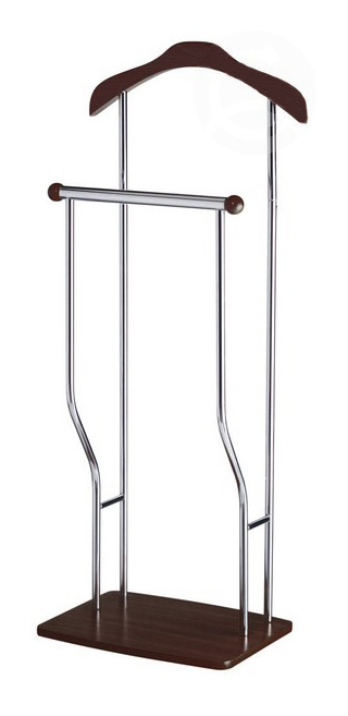 Elegantný pomocník, vešiak GEORGE. Kovové časti sú pochrómované. Drevený podstavec a vešiak sú v tmavej wenge farbe. Je vysoký 107 cm.