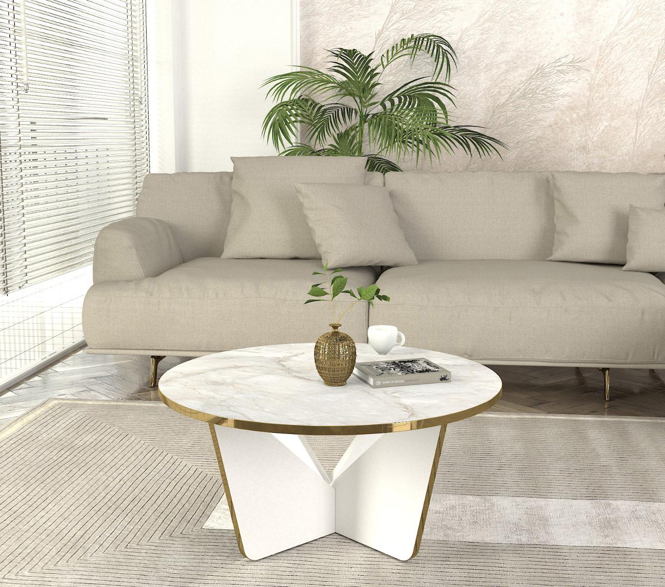 GERTA luxusný konferenčný stolík, biela/biely mramor
