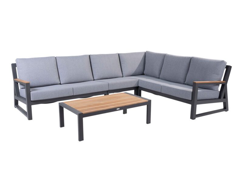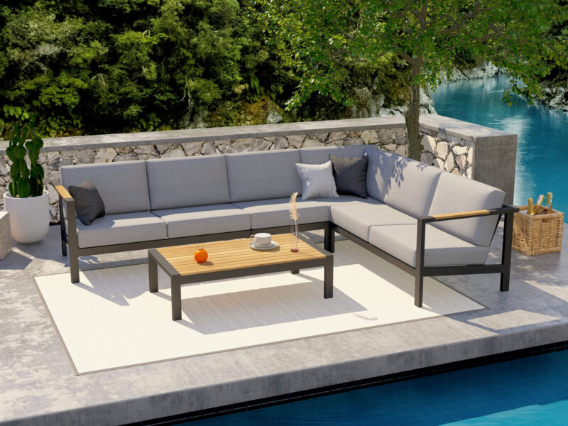 Štýlová sedacia súprava v rohovom prevedení. Minimalistický dizajn, ktorý perfektne zapasuje do akejkoľvek záhrady či na terasu.