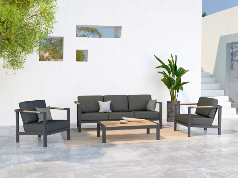 Štýlová sedacia súprava v klasickom prevedení. Minimalistický dizajn, ktorý perfektne zapasuje do akejkoľvek záhrady či na terasu.