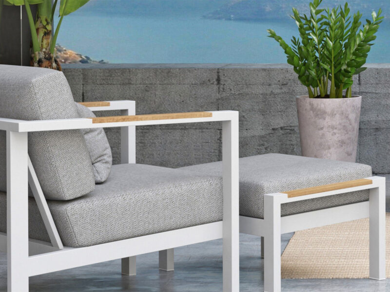 Štýlová a praktická taburetka Ginger v bielej farbe s pevnou konštrukciou z práškovaného hliníka a ocele. Ideálna na terasu, balkón či záhradu.