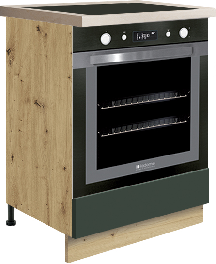 Kuchyňa GLADIOLA – GREEN je v štýlovom a funkčnom prevedení. Je vhodná do modernej aj klasickej kuchyne.Korpus nábytku je vyrobený z kvalitnej LTD dosiek vo farbe dub Artisan, v matnom prevedení. Dvierka sú vyrobené z MDF dosky. Nábytok je nenáročný na údržbu. Disponuje tichým dovieraním dvierok. Nožičky sú regulovateľné.Dolná skrinka GLADIOLA je v zelenom matnom prevedení. Je vhodný na vstavanú rúru.Rozmery (š,v,h): 60 x 82 x 51 cm.Sokel a pracovnú dosku je potrebné dokúpiť, nie sú súčasťou skrinky.Dodávame v demontovanom stave.