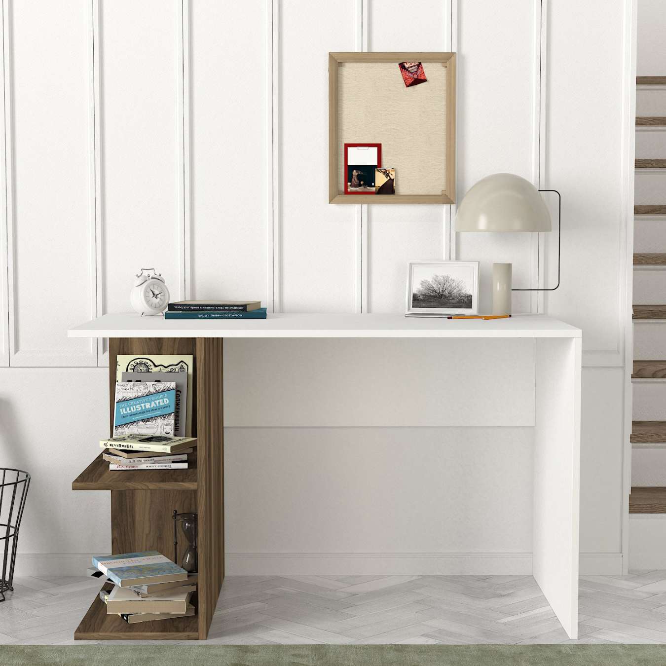 Písací stôl GLANCEPredstavujeme vám písací stôl GLANCE, ideálnu voľbu pre vašu kanceláriu alebo detskú izbu. Tento štýlový a praktický stôl je navrhnutý tak, aby vám poskytol pohodlné a efektívne pracovné prostredie.Typ tovaru: Písací stôlVhodné do miestnosti: Kancelária a detská izbaMateriál: LTDRozmer: 120 x 75 x 60 cmFarba: Biela + orechVybavenie: RegálkaTvar: ObdĺžnikovýHrúbka materiálu: 18 mmDodatočné informácie: Dodávame v demontePísací stôl GLANCE je vyrobený z kvalitného LTD materiálu s hrúbkou 18 mm, čo zaisťuje jeho pevnosť a dlhú životnosť. Elegantná kombinácia bielej a orechovej farby dodáva stolu moderný a štýlový vzhľad, ktorý sa hodí do akéhokoľvek interiéru. Stôl je vybavený praktickým regálkom, ktorý poskytuje dostatok úložného priestoru pre vaše pracovné potreby a pomôcky.Dodávame v demonte, čo znamená, že stôl ľahko zložíte podľa priloženého návodu. Písací stôl GLANCE je perfektnou voľbou pre každého, kto hľadá štýlový a funkčný nábytok do svojej kancelárie alebo detskej izby.