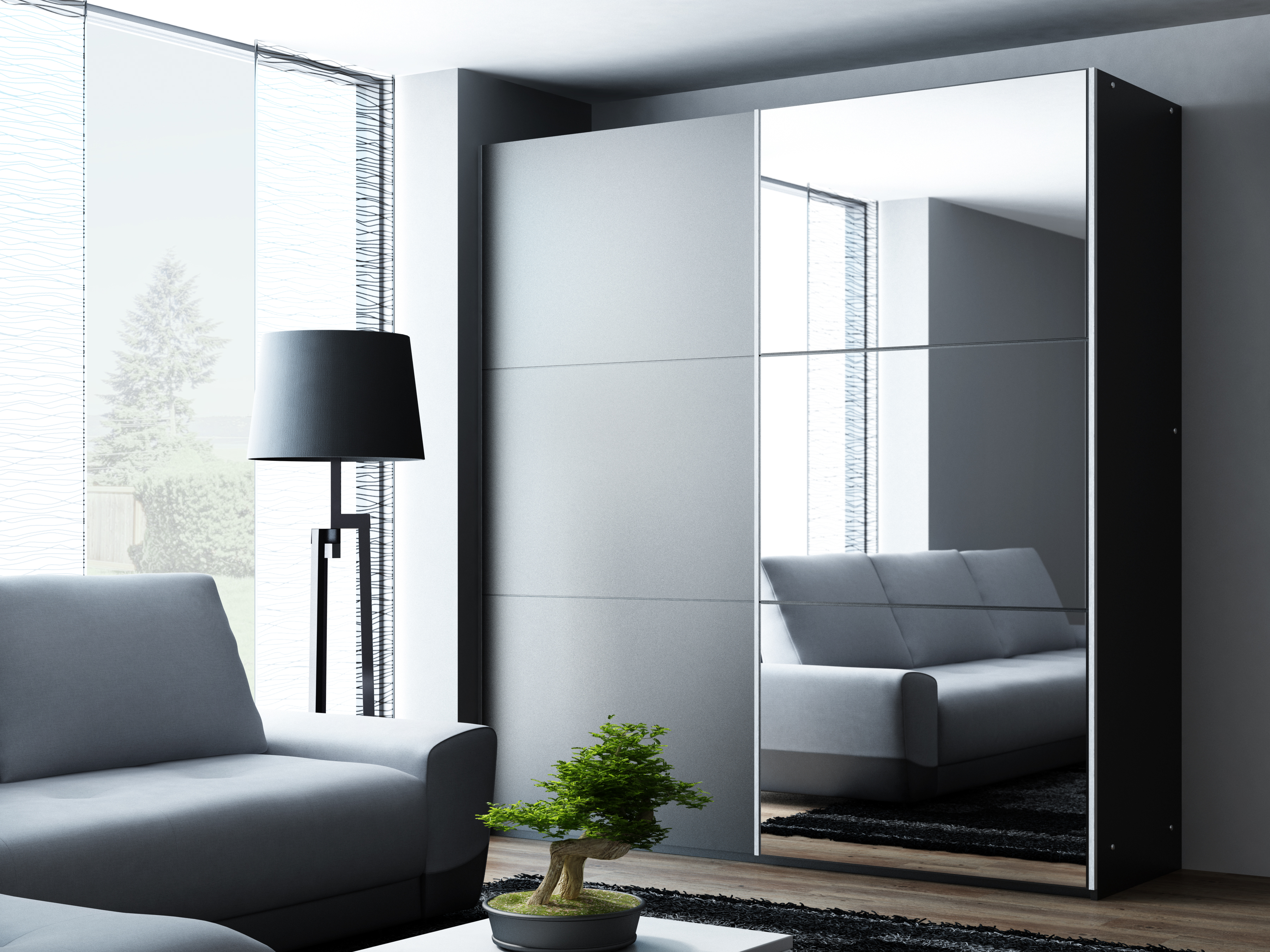 GOGO 200 šatníková skriňa so zrkadlom, čierna