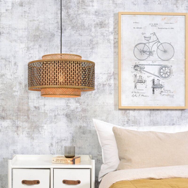 Vyrobené z udržateľného bambusu – závesná lampa Bhután s dvojitým tienidlom Či už ide o sadenie stromov alebo pomoc ľuďom v núdzi – značka Good & Mojo od holandskej spoločnosti It’s about Romi sa zapája do mnohých charitatívnych projektov a vyrába udržateľné svietidlá, aby zachovala čo najnižšiu ekologickú stopu a zároveň vytvorila atraktívne produkty. Za každú predanú lampu sa zasadí strom, čo je možné vďaka partnerstvu s projektmi Eden Reforestation Projects, ktoré sa okrem iného snažia znížiť extrémnu chudobu mnohých ľudí tým, že poskytujú prácu dedinčanom. Pri výrobe v Bhutáne sa používal bambus. Je to stabilný, pevný materiál, ktorý je mimoriadne presvedčivý, pretože rýchlo rastie a produkuje veľa kyslíka. Vďaka svojej flexibilite je možné dve tienidlá závesnej lampy ručne utkať. Výsledkom je atraktívny vzor, ktorý vytvára atmosférický svetelný obrazec hneď, ako do miestnosti prenikne svetlo zvnútra. Odtiene sú spracované v dvoch vrstvách. Kým vnútorné tienidlo je úzke a vysoké a má čistý bambus prírodnej farby, horné tienidlo je široké a krátke a tiež má čierny bambus, ktorý dodáva lampe osobitý charakter.