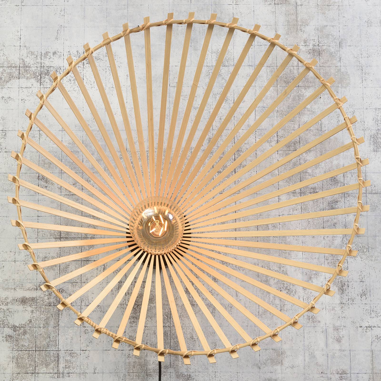 Asymetrické nástenné svietidlo Bromo z bambusu, s vypínačom Základňu nástenného svietidla Bromo tvorí okrúhly, nenápadný držiak na stenu vyrobený zo železa. V ňom je integrovaná zásuvka, ktorá je stredom tejto špeciálnej lampy. Z tohto stredu vychádzajú početné jemné pramene svetlého bambusu, ktoré sa rovnobežne a rovnomerne rozbiehajú k vonkajšiemu kruhu, ktorý tvorí okraj, a tým aj harmonické zakončenie. Kontrastné tvary tvoria vcelku okrúhle asymetrické tienidlo, ktoré je mierne zakrivené smerom k stene a integruje a obklopuje používaný zdroj svetla. Na vytvorenie špeciálneho svetelného efektu sa odporúča zvoliť hlavové zrkadlové svietidlo, ktoré vyžaruje svetlo najmä v smere steny, a tak svieti cez priestory medzi vzperami, čím vytvára na stene atmosférický vzor. Prírodný vzhľad tejto nástennej lampy vychádza najmä z udržateľného bambusového materiálu, z ktorého je kompletne vyrobené tienidlo. Bambus je mimoriadne pevný a pružný a po prerezaní veľmi rýchlo dorastá. Faktory, ktoré sú pre značku Good & Mojo dôležité. Ich sortiment pozostáva z udržateľných svetiel a riadi sa heslom: „Keď kupujete svetlo, dávate svetlo.“ Realizuje sa to prostredníctvom spolupráce s charitatívnymi nadáciami, ako je napríklad WakaWakaFoundation, ktorá využíva dary na poskytovanie solárnych produktov rodinám v núdzi. Alebo vďaka partnerstvu s projektmi zalesňovania Eden, v rámci ktorého sa za každé predané svetlo vysadí strom.